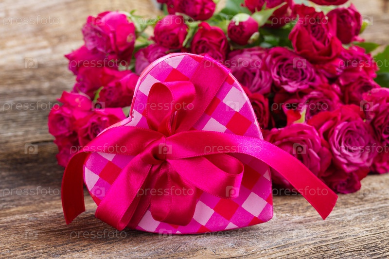 Красивые розы и подарок