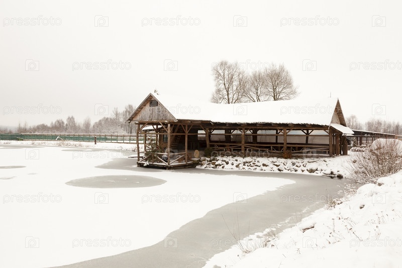 Деревянное здание у реки