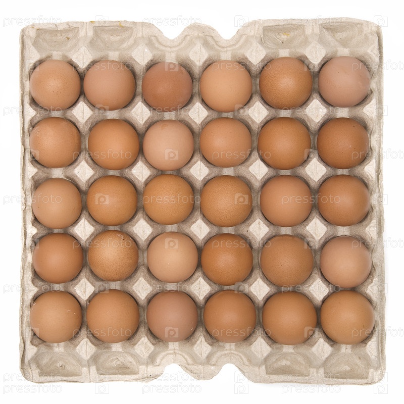 Коробка с 30 яйцами на белом фоне изолирована