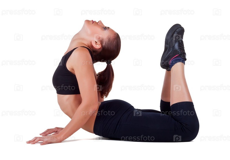 Портрет красивой девушки - гимнастки на белом фоне