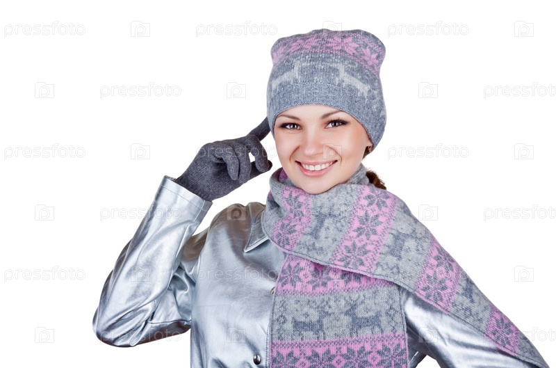 Красивая девушка в зимней одежде, на белом фоне