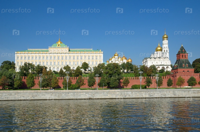 Москва, Россия. Осенний вид на Кремль и Кремлевскую набережную в солнечный день