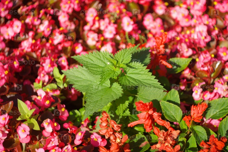 Крапива и красные цветочки