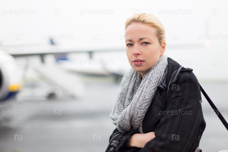 Женщина ждет посадку на самолет