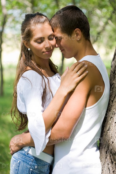 Фото красивой девушки и ее парня, обнимающихся на свежем воздухе
