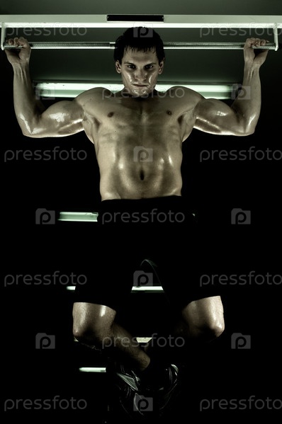 Мужчина качает мышцы
