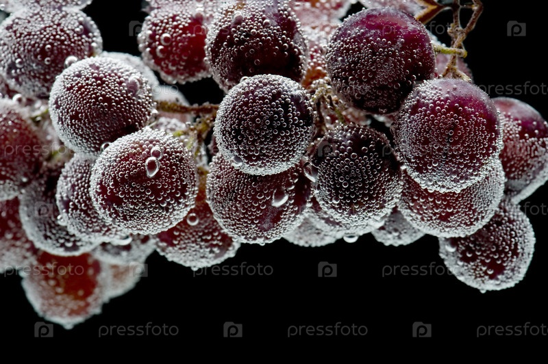 Объект на черном - виноград в воде
