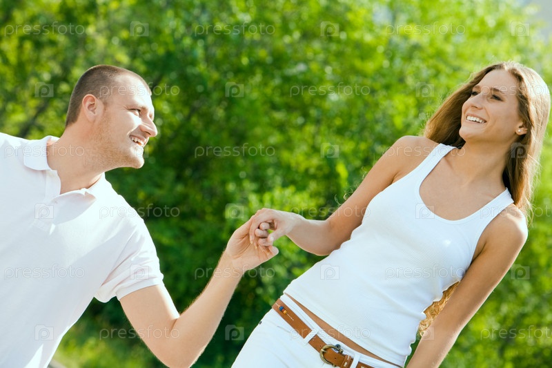 Портрет любящей пары, гуляющей снаружи