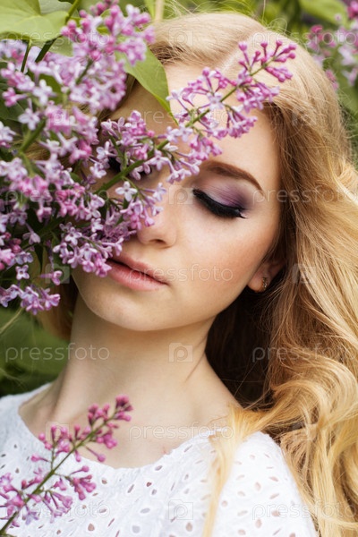 Портрет красивой девушки с сиреневые цветы