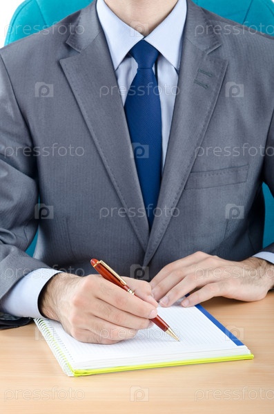 Бизнесмен, сидя за столом