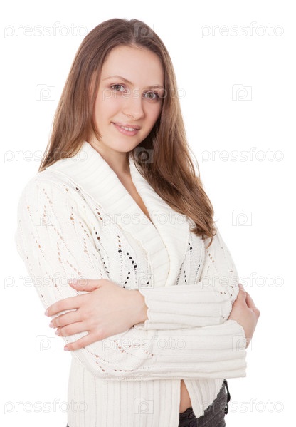 Портрет девушки-шатенки на белом фоне