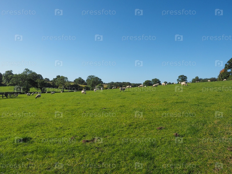 Стадо овец на холме, Уорикшир, Великобритания