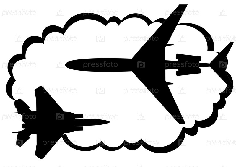 Самолет,черно-белая иллюстрация