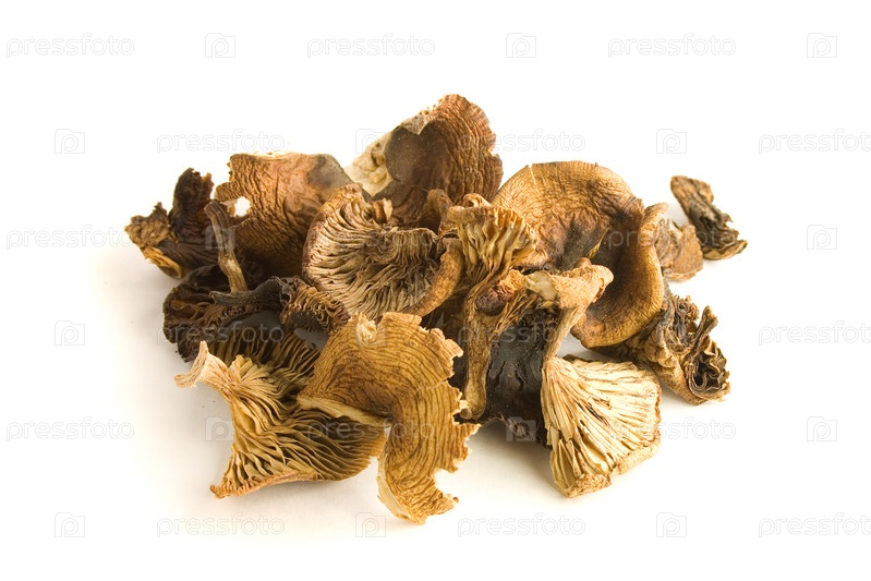 Изолированная куча сухих грибов на белом фоне
