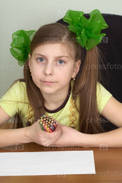 Девушка с цветными карандашами в руках и листом бумаги