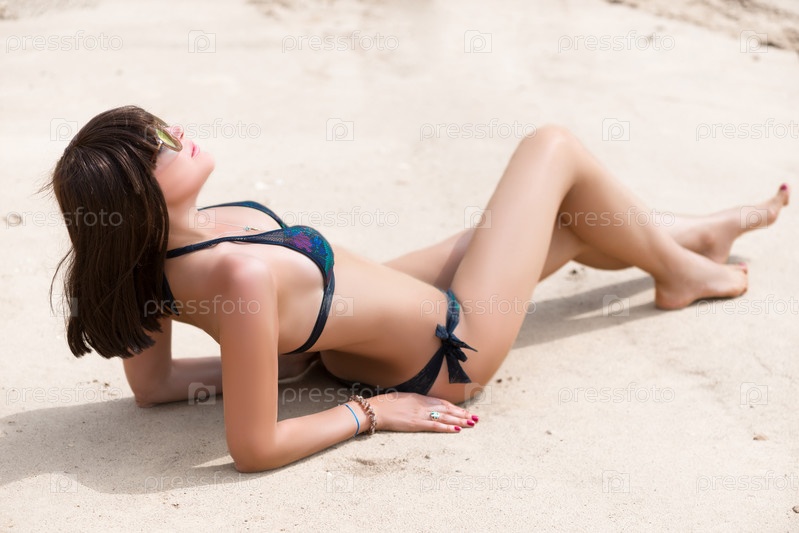 Девушка загорает на пляже