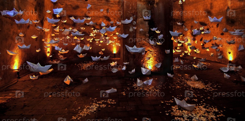 Парящие в воздухе бумажные кораблики
