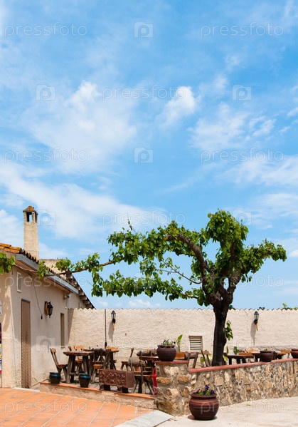 Дом и дворик - в Азии, на фоне неба