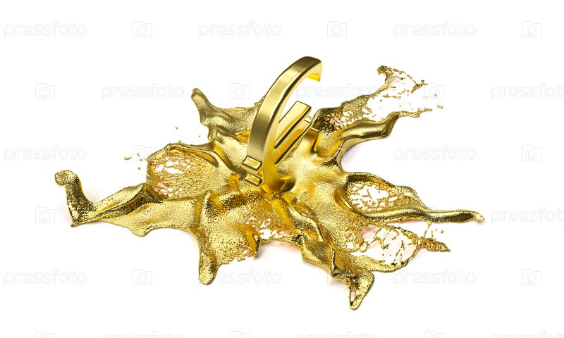 Символ евро тает в жидкое золото. путь включен