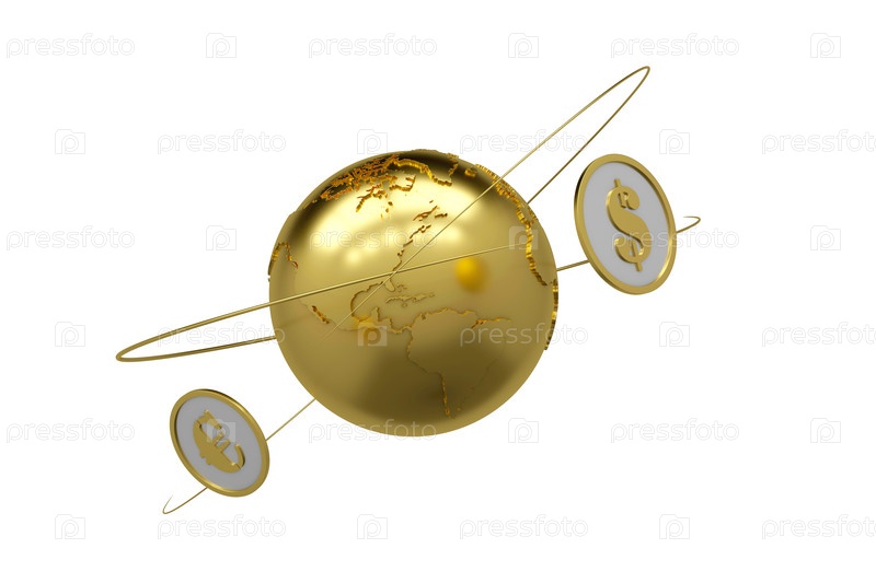 Стрелки вокруг планеты Земля и мировой валюты. путь включены