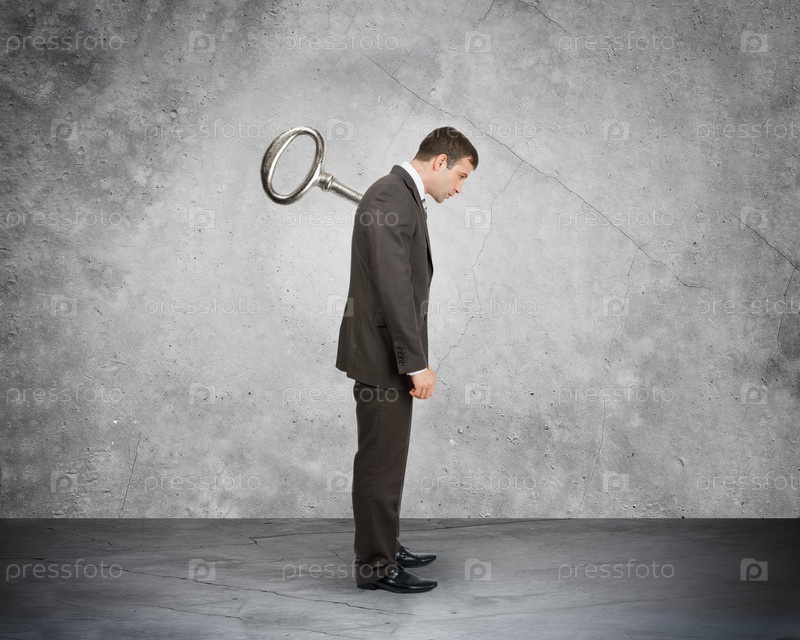 Бизнесмен с ключом в спине