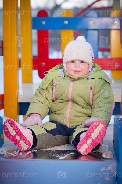 Ребенок на детской площадке зимой