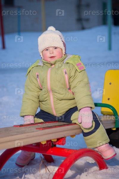 Ребенок на детской площадке зимой