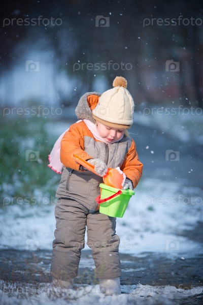 Ребенок с игрушечным ведерком на улице