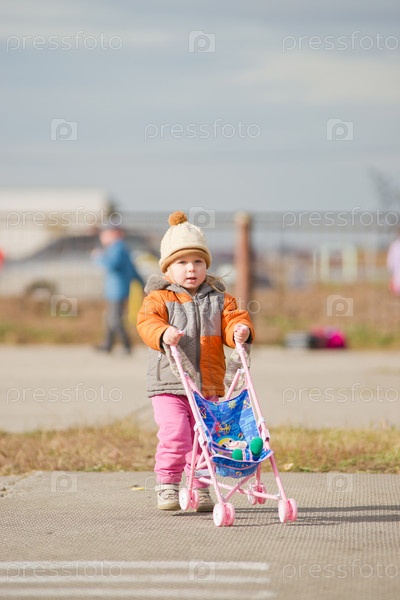 Ребенок в коляске на улице осенью