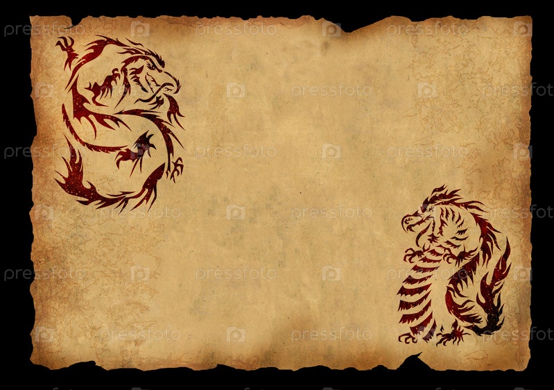 Лист пергамента с изображением двух драконов