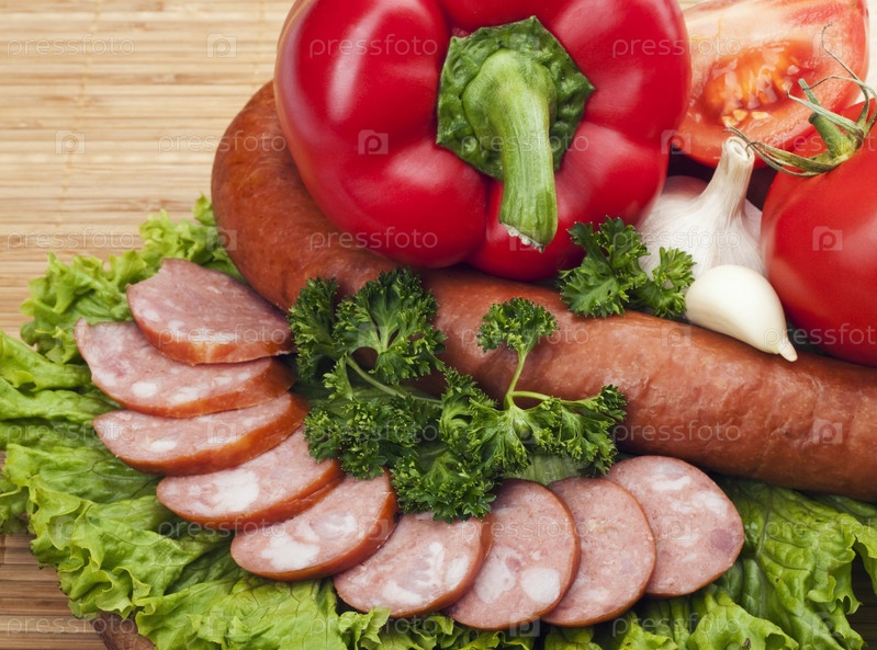 Колбаса, зелень и овощи