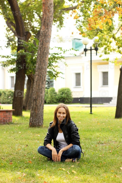 Девушка сидит на траве