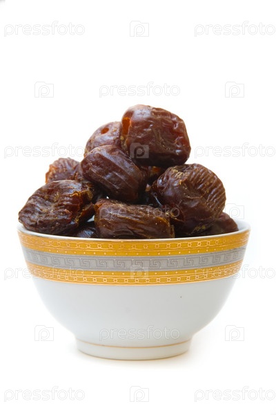 Даты в чашке, изолированные на белом