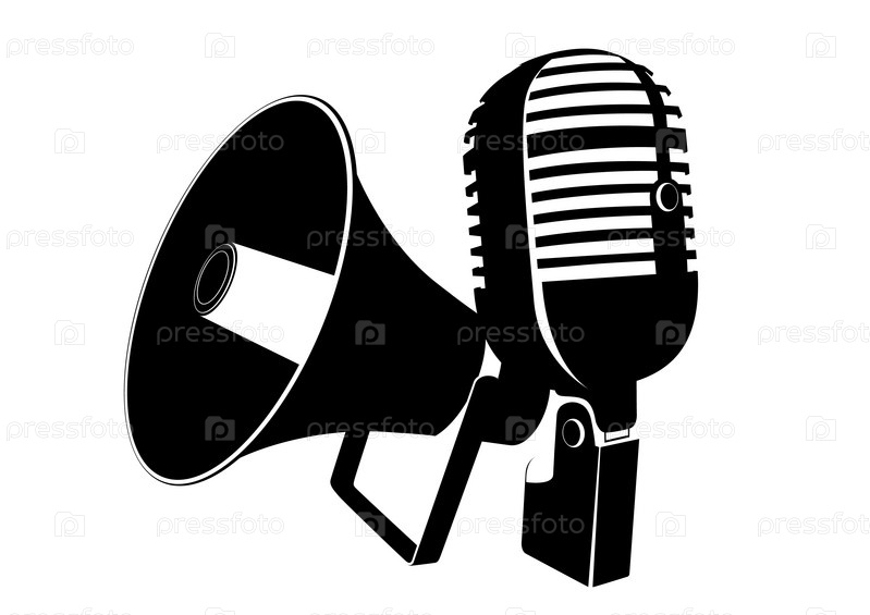 Микрофон и мегафон, черно-белая иллюстрация