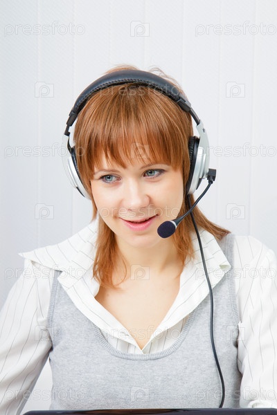 Девочка в наушники с микрофоном на горячей линии
