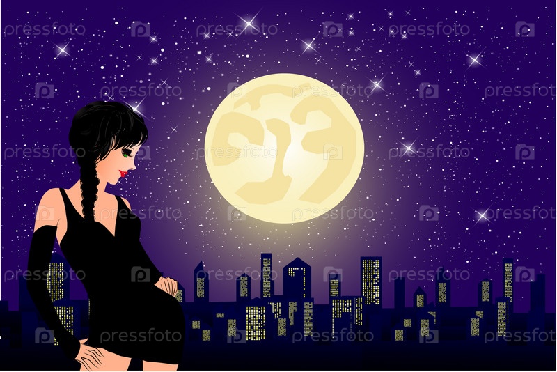 Девушка на фоне ночного города