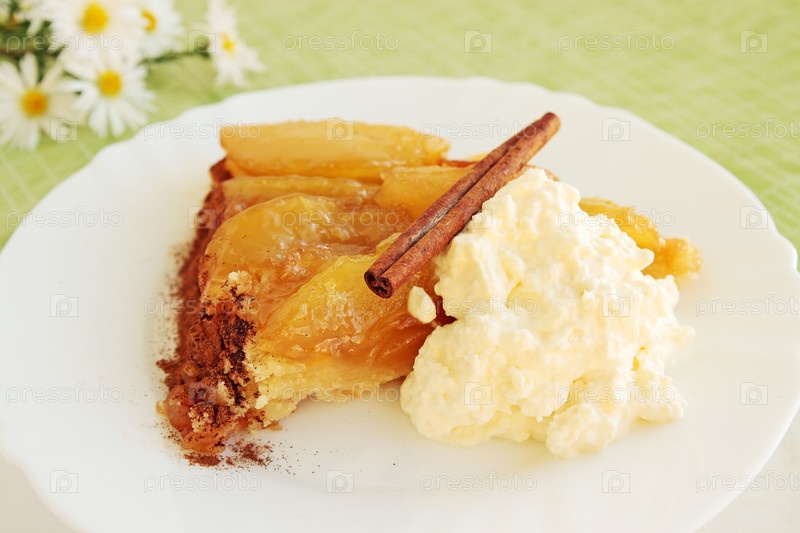 Кусок пирога с карамелью лежит на тарелке