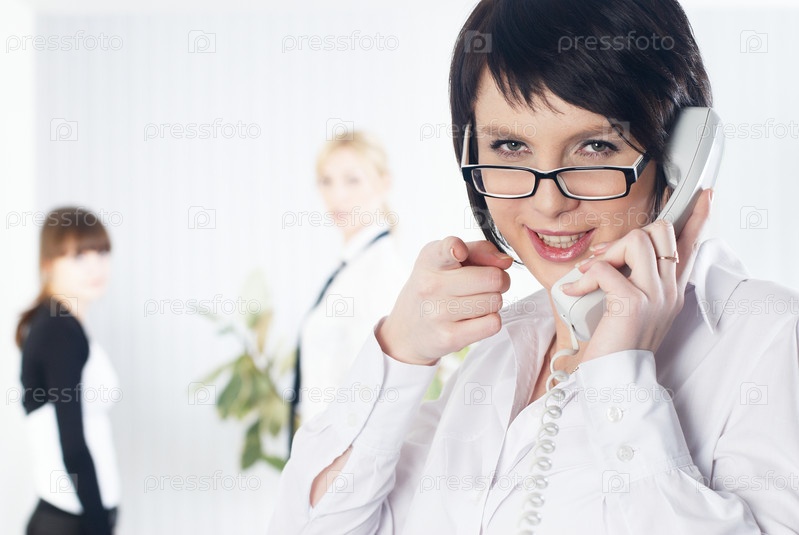 Бизнес-леди разговаривает по телефону в офисе