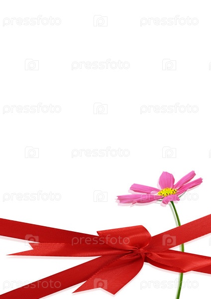 Праздничный фон с цветком и красным бантом