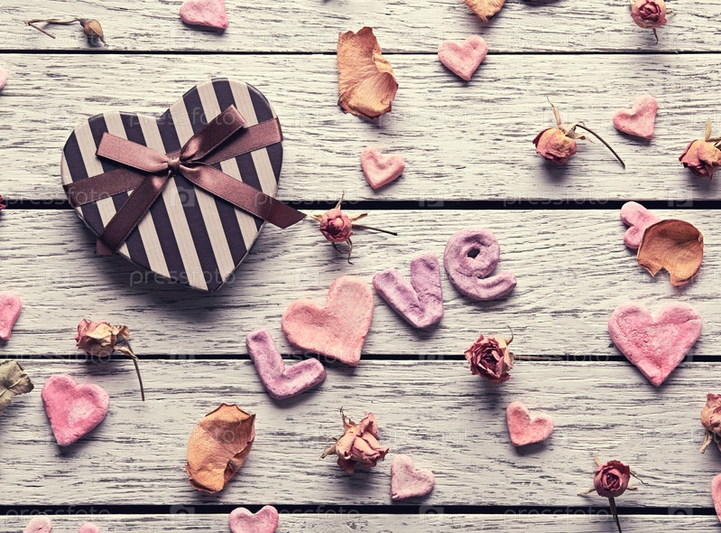 Слово любовь с Подарочная коробка форме сердца