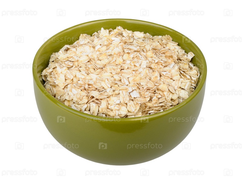 Сырые овсяные хлопья, изолированы на белом фоне