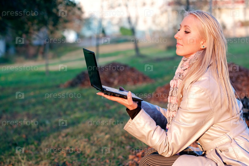 Девушка с нетбуком в парке