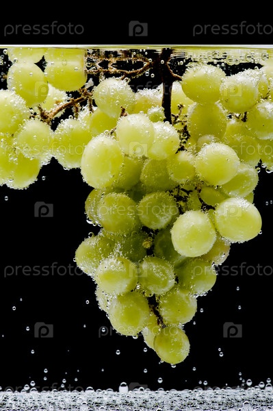 Объект на черном - виноград в воде