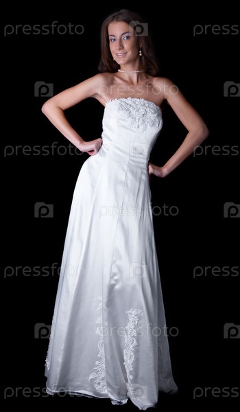 Молодая женщина в свадебном платье на черном