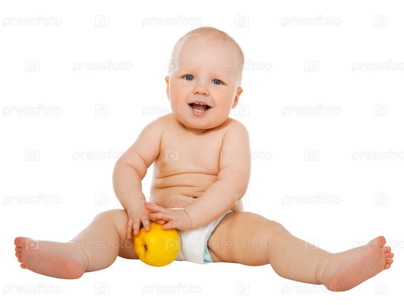 Мальчик ест яблоко.Студийный снимок.Изолирован на белом фоне