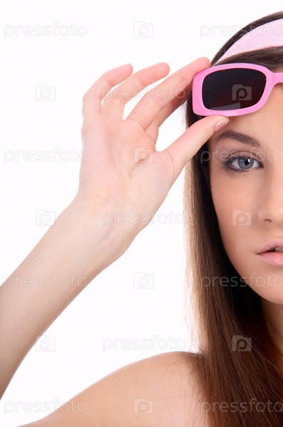 Модель в розовых очках - пол-лица в анфас