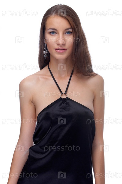 Голубоглазая девушка в черном на белом фоне
