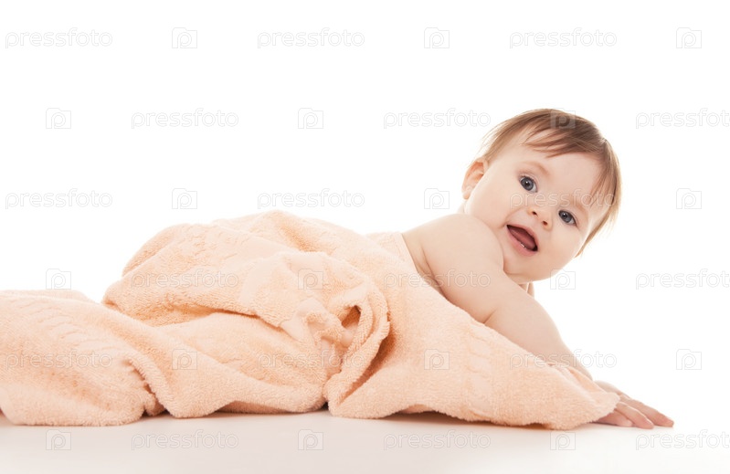 Девочка в полотенце, ребенок изолирован на белом