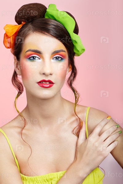 Портрет девушки с ярким макияжем и прической