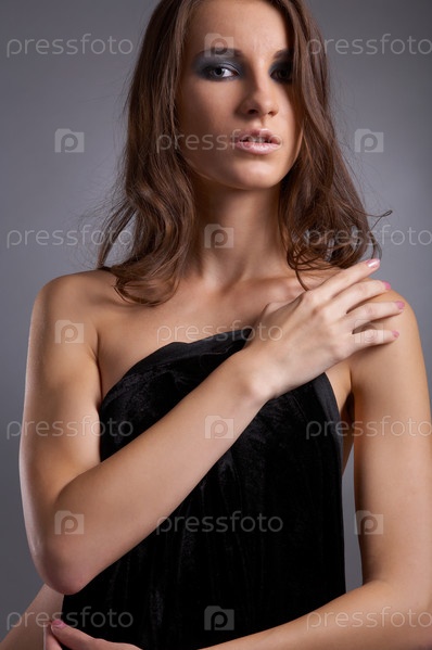 Привлекательная молодая модель - грудь закрыта черной тканью